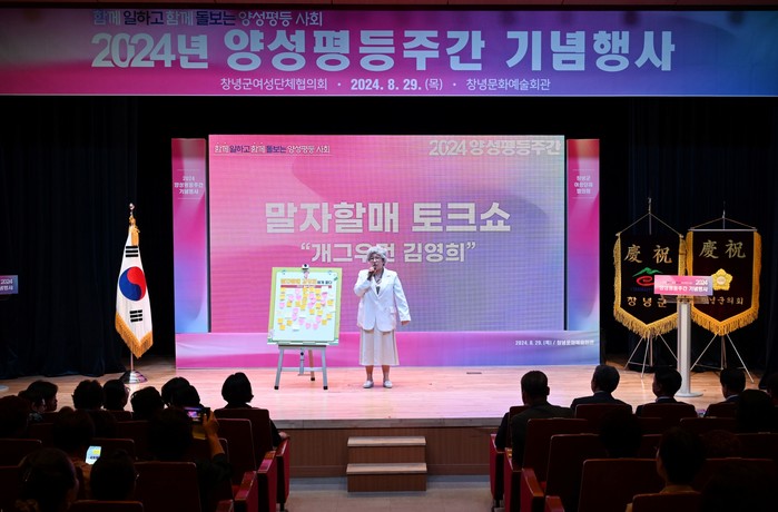 이번 행사에는 지역 기관과 단체 회원 200여 명이 참석했으며, ‘함께 일하고, 함께 돌보는 양성평등사회’를 주제로 진행됐다. 행사에서는 양성평등주간 홍보영상 상영, 유공자 표창, 양성평등 다짐을 위한 포토 퍼포먼스와 더불어 개그우먼 김영희의 소통 토크쇼가 열렸다.