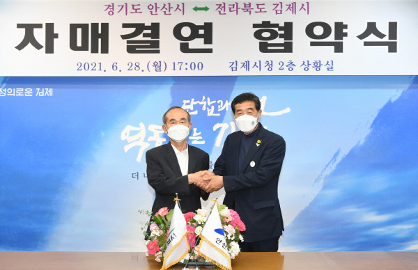 | ▲ 안산시-전북 김제시, 상생 자매결연 협약체결(사진=안산시) |