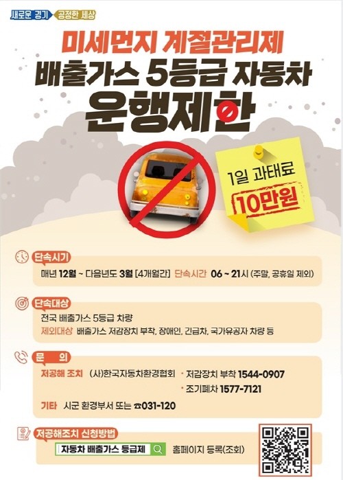 | ▲ 배출가스 5등급 자동차 운행제한 포스터(사진=경기도) |