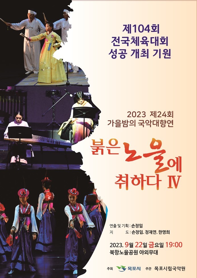 이번 공연은 제104회 전국체전과 제43회 전국장애인체전 성공 개최를 기원하고 우리의 소리와 흥을 시민과 향유하기 위해 마련된 것으로, 목포시립국악원 원감인 손정임 교수, 정재연 무용교수, 한명희 기악교수가 지도했다.