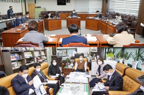 도시환경위원회(위원장 박태순) 위원들도 같은 날 오전 도시환경위원장실에서 시 도시계획과 등 6개 부서 관계자들을 잇달아 만나 ‘2022년도 도시정비기금 운영계획안’을 포함해 총 16건을 논의했다.