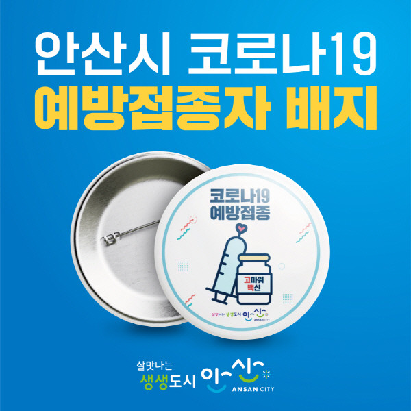 [프레스뉴스] 강보선 기자= 안산시(시장 윤화섭)는 코로나19 예방접종자의 일상회복 지원을 위해 예방접종을 받은 시민에게 예방접종자임을 알리는 배지를 배부한다고 29일 밝혔다.