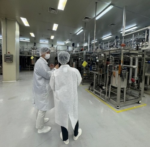 ▲안산시 관계자와 식품제조가공업체 관계자가 지난해 위생관리등급제 평가를 진행하며 현장을 점검하고 있다.(사진=안산시) |