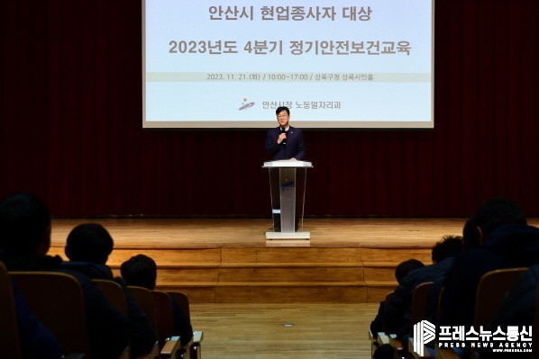 [프레스뉴스] 장현준 기자= 안산시(시장 이민근)는 현업근로자 356명을 대상으로 총 6시간에 걸쳐 ‘4분기 정기안전·보건교육’을 실시한다고 22일 밝혔다.