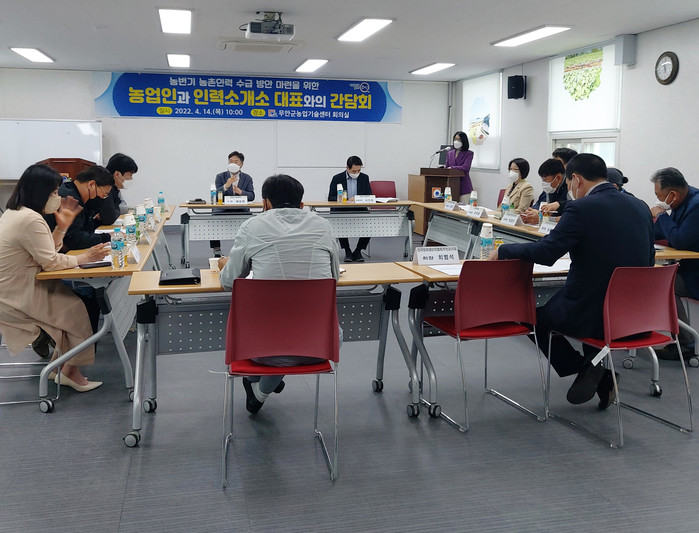 [전남=프레스뉴스] 강래성 기자= 무안군은 지난 14일 농업기술센터 회의실에서 농촌인구 감소와 고령화로 농촌일손 부족이 심화됨에 따라 이에 대한 대책 마련을 위해 농업인과 인력사무소 대표 간 간담회를 개최했다고 밝혔다.