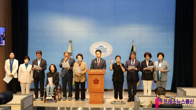 이날 기자회견에는 더불어민주당 소속 보건복지위원회 위원 일동(고영인, 신동근, 강선우, 김민석, 김영주, 김원이, 남인순, 서영석, 신현영, 인재근, 전혜숙, 정춘숙, 최혜영, 한정애)이 함께했다.