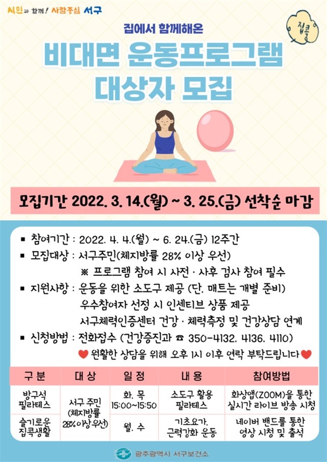| ▲비대면 운동프로그램 대상자 모집 포스터/서구청 제공 |