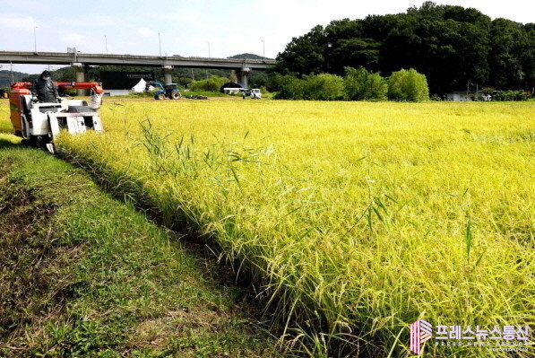 | ▲조생종 벼베기 현장(사진=시흥시) |