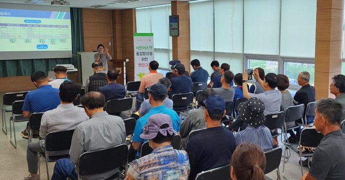 | ▲샤인머스켓 일소 피해 예방 교육(사진제공=함평군) |
