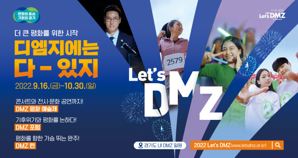 올해 ‘2022 렛츠 디엠지(Let’s DMZ)’ 는 9월 21일부터 파주 임진각 일원에서 40일간 개최됐다. 경기도는 행사 기간 젊은 층을 비롯한 다양한 연령층 모두가 참여하는 지속가능한 국내 최대 축제로 정착할 수 있도록 홍보 활동을 강조했다.
