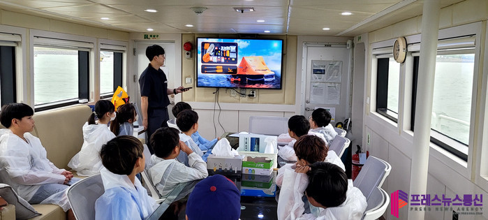 또한, 운행하는 어업지도선에 탑승해 선박 운용을 체험하고, 선박에서의 비상 상황이 발생했을 때의 대처요령과 구명조끼·소화기 등의 물품 사용법도 함께 교육받는 시간이 이어졌다.