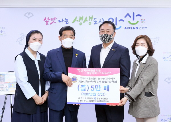 | ▲ 안산지역사회보장협의체, 국제라이온스협회 안산지역.안산제일신협으로부터 마스크 10만장 기탁 받아 |