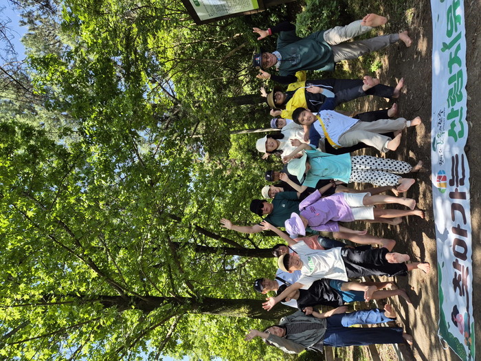가좌산과 선학산에서 진행된 산림치유는 바르게 걷기의 중요성과 어싱의 효과에 대한 강의와 전국적으로 유행하고 있는 걷기 열풍에 맞추어 숲길을 맨발로 걷는 활동을 했다.