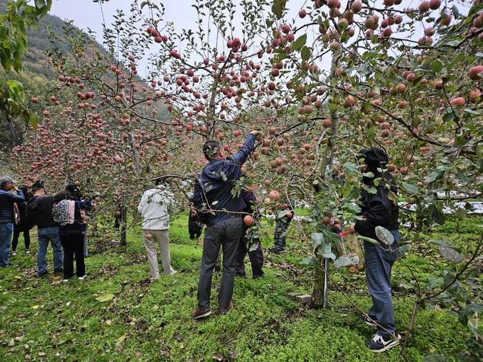 ▲지난해 농촌체험프로그램 (농촌체험 사과따기) |
