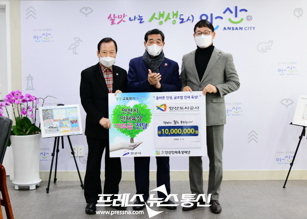 [프레스뉴스] 장현준 기자= (재)안산인재육성재단(이사장 윤화섭 안산시장)은 4일 안산도시공사(사장 서영삼) 임·직원들로부터 관내 인재육성을 위한 장학사업 기부금 1천500만 원을 기탁받았다.