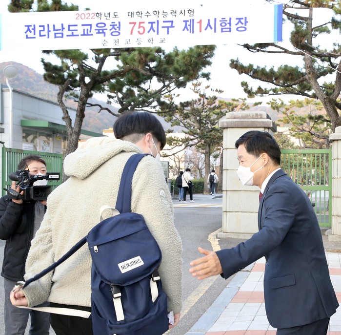 [전남=프레스뉴스] 강래성 기자= 장석웅 전라남도교육감이 18일(목) 2022대학수학능력시험장을 찾아 수험생을 격려했다.