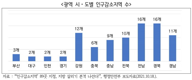 | ▲ 광역 시도별 인구감소지역 수 그래픽(사진=경기연구원) |