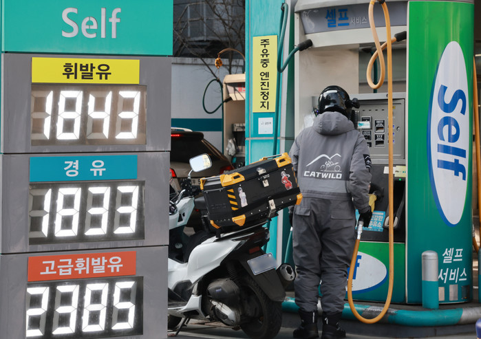 | ▲석유 최고가격제 시행 닷새째인 17일 서울시내의 한 주유소에서 시민이 기름을 넣고 있다. 이날 한국석유공사 유가정보시스템 오피넷에 따르면 전국 주유소 평균 휘발유 가격은 리터당 1829.6원으로 전날보다 3.1원 내렸다. 경유 가격은 같은 시각 1827.7원으로 4.1원 하락했다. 전국에서 기름값이 가장 비싼 서울 주유소도 하락세를 이어갔다/사진-뉴스1 |
