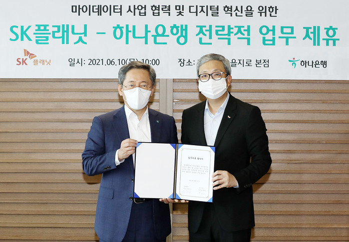 [프레스뉴스] 김대일 기자= 하나은행(은행장 박성호)은 10일 서울 중구 을지로 하나은행 본점에서 SK플래닛(대표이사 이한상)과 「마이데이터 서비스」 협력을 위한 업무협약을 체결했다고 밝혔다.