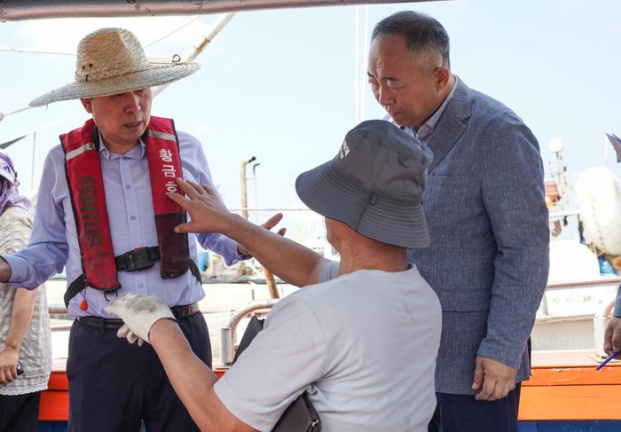 ▲박홍률 목포시장이 갈치낚시 행사참여 선박에 올라 안전한 낚시를 즐길수 있는 환경 조성을 당부했다. (사진제공=목포시) |
