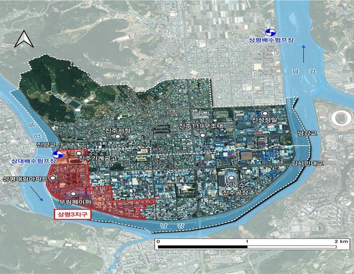 | ▲진주시는 최근 기후변화에 따른 집중호우와 태풍 등 자연재해 발생 위험이 커짐에 따라, 과거 상습 침수 피해가 반복된 상평3지구를 ‘자연재해위험개선지구’로 신규 지정했다고 밝혔다. (사진=진주시) |