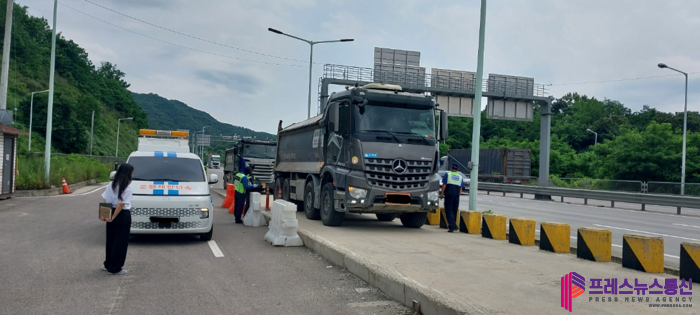 [프레스뉴스] 장현준 기자= 경기도는 지난 6월 22일부터 27일까지 평택검문소(평택), 도곡검문소(양평), 백암검문소(용인), 광사검문소(양주) 등 4곳에서 과적 차량 합동단속을 실시한 결과 총중량 적재 초과 차량 및 안전기준위반 등으로 19대를 적발했다.