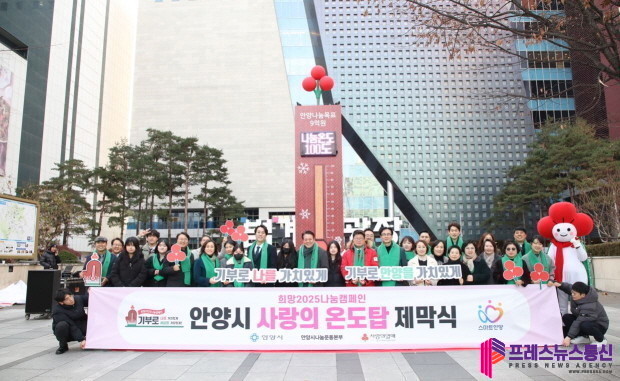 [프레스뉴스] 장현준 기자= 안양시는 지난 10일 16시 범계역 광장에서 모금액 9억원을 목표로 진행하는 ‘희망 2025 나눔 캠페인 사랑의 온도탑’ 제막식을 개최했다고 11일 밝혔다.