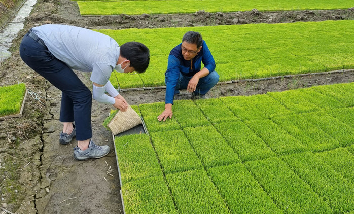 | ▲ 현장에서 농민에게 벼 육묘 시범을 보이고 있다.(사진제공=화순군) |
