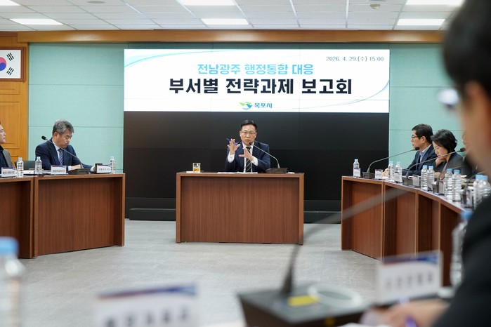 시는 지난 29일 조석훈 목포시장 권한대행 주재로 ‘전남·광주 통합대응 부서별 전략과제 보고회’를 개최했다. 이날 보고회에는 국·소·단장과 부서장, 팀장 등이 참석해 부서별 대응 과제를 공유하고, 실행 방향과 추진 전략을 집중 점검했다.