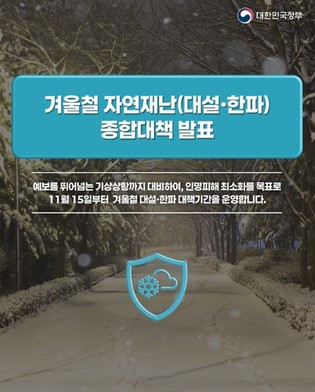 행정안전부, 겨울철 자연재난(대설·한파) 종합대책 발표