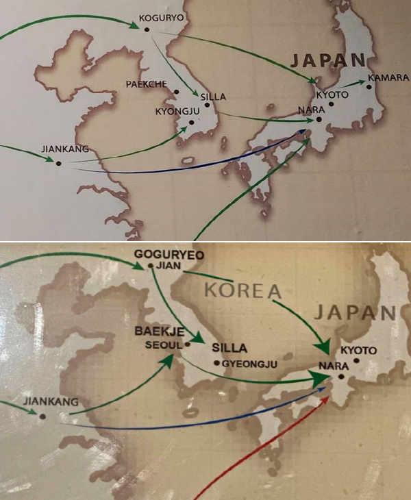 | ▲인도국립박물관 불교전파도 대한민국 부분(수정 전, 후)사진=경기도 |