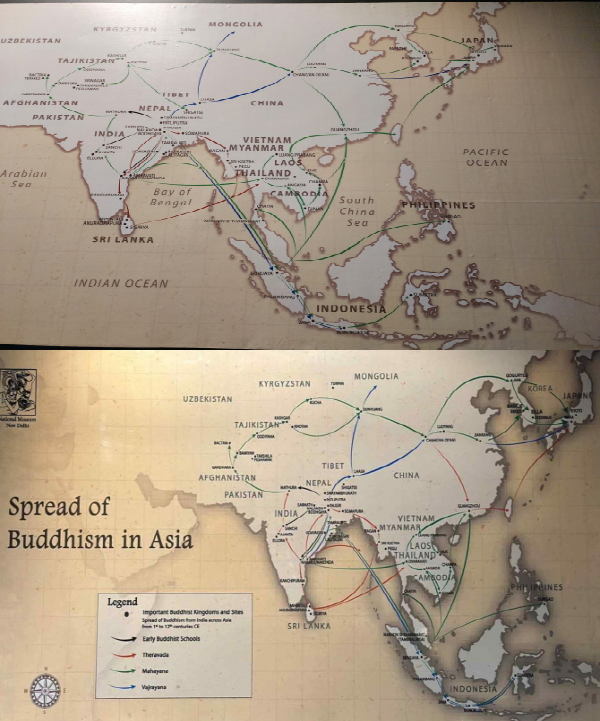 | ▲인도국립박물관 불교관 내 불교전파도(수정 전,후)사진=경기 |