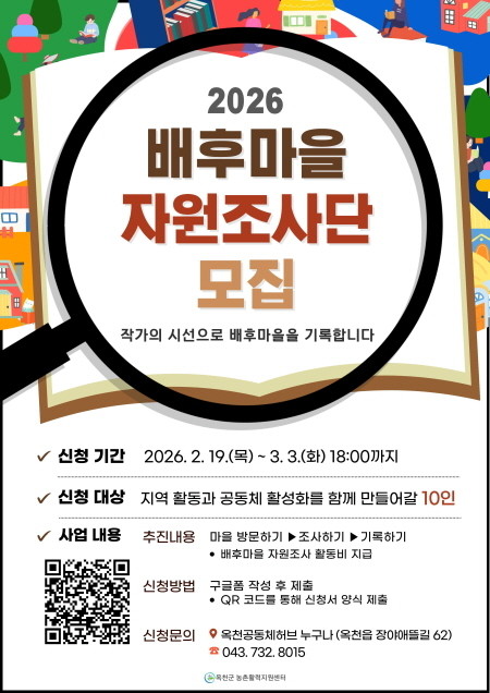 | ▲2026년 배후마을 자원조사단 모집 포스터(사진=옥천군) |