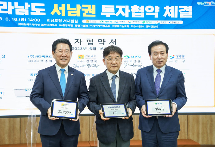 전라남도가 지난 16일 전남 서남권 발전을 위해 전라남도의 6개 시군과 8개 기업과 함께 전남도청에서 투자협약을 체결했는데, 이 자리에서 ㈜세원하드페이싱은 목포시와 투자협약을 체결했다.
