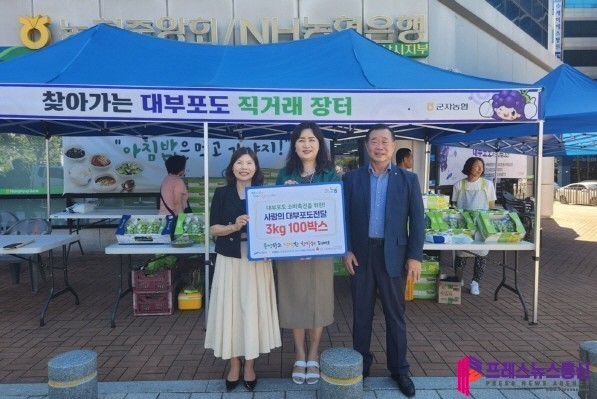 [프레스뉴스] 장현준 기자= 안산시(시장 이민근)는 지난달 30일 추석 명절을 맞이해 NH농협 안산시지부(지부장 강정미)로부터 ‘사랑의 대부포도’ 100박스(250만 원 상당)를 기탁받았다고 2일 밝혔다.