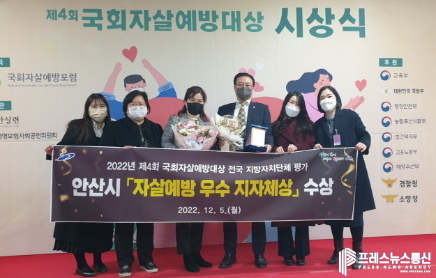 [프레스뉴스] 장현준 기자= 안산시(시장 이민근)는 지난 5일 국회자살예방포럼(공동대표 윤호중·윤재옥 국회의원)에서 주최한 ‘제4회 국회자살예방대상 전국지방자치단체 평가’에서 우수 지자체로 선정됐다고 6일 밝혔다.
