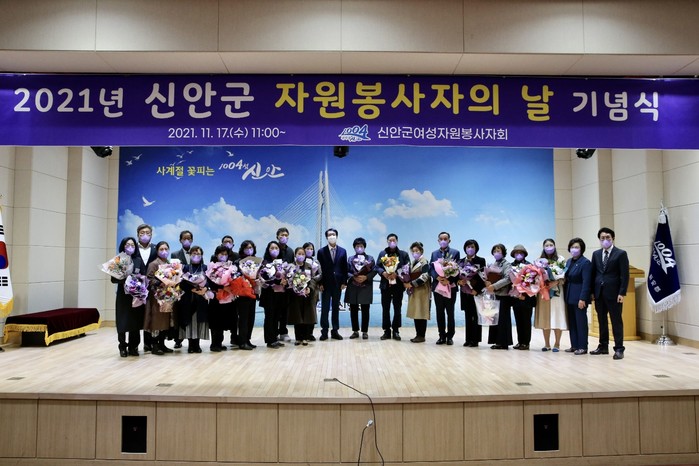 [전남=프레스뉴스] 강래성 기자= 신안군여성자원봉사자회(회장 김매자)에서는 17일(수) 제16회 자원봉사자의 날을 기념하여 신안군청 공연장에서 자원봉사활동 향상 유공 수상자 및 가족, 자원봉사단체 회원 등 99명이 참석한 가운데 「2021년 신안군 자원봉사자의 날」기념식을 가졌다고 밝혔다.