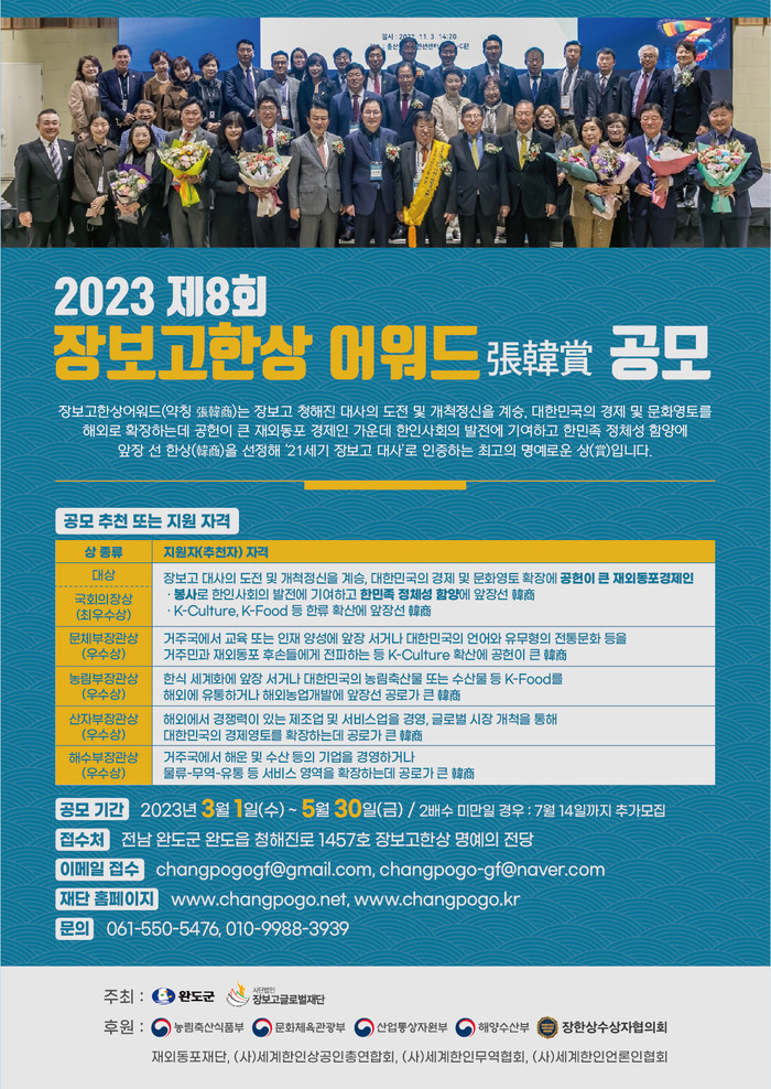 | ▲ 완도군과 사단법인 장보고글로벌재단은 '제8회 장보고한상 어워드' 헌정자를 공모한다.(사진제공=완도군) |