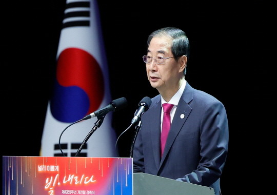 한 총리는 이날 오전 서울 세종문화회관에서 열린 제4355주년 개천절 경축식 경축사를 통해 “이제는 우리 경제의 체질을 바꾸고, 미래를 준비해야 한다”며 이 같이 말했다.