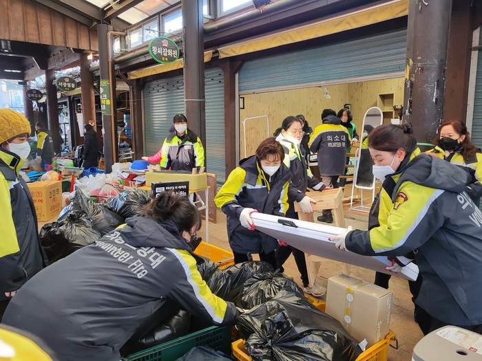 3일은 의용소방대연합회에서 회원 60여 명이 참여했으며, 4일은 자원봉사단체협의회 14개 단체 70여명이 참여해 이삿짐을 임시시장으로 옮기며 상인들이 쾌적한 환경에서 영업할 수 있도록 봉사자들이 구슬땀을 흘렸다.