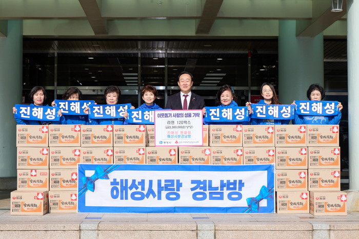 | ▲해성사랑 경남방 통영시 라면 120박스(330만원 상당) 기탁(사진=통영시) |