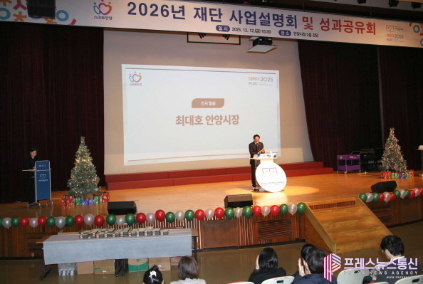[프레스뉴스] 장현준 기자= 안양시 인재육성재단(이사장 최대호)은 지난 12일 안양시청 별관 2층 강당에서 ‘2026년 재단 사업설명회 및 성과공유회’를 개최했다고 15일 밝혔다.