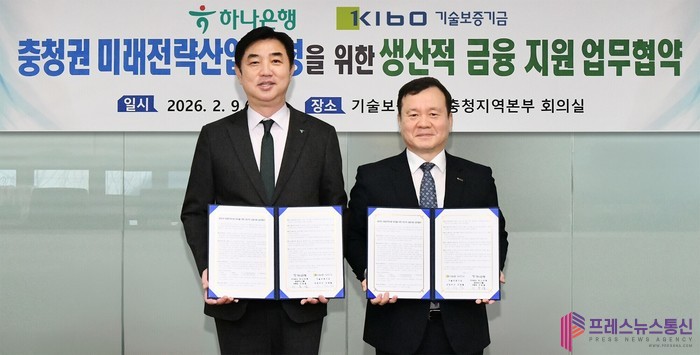 [프레스뉴스] 류현주 기자= 하나은행(은행장 이호성)은 기술보증기금(이사장 김종호)과 지난 9일 「충청권 미래전략산업(ABCDEF) 육성을 위한 생산적 금융 지원」 업무협약을 체결했다고 밝혔다.