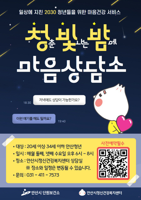 | ▲청춘 빛나는 밤에 마음상담소 홍보 포스터(사진=안산시) |