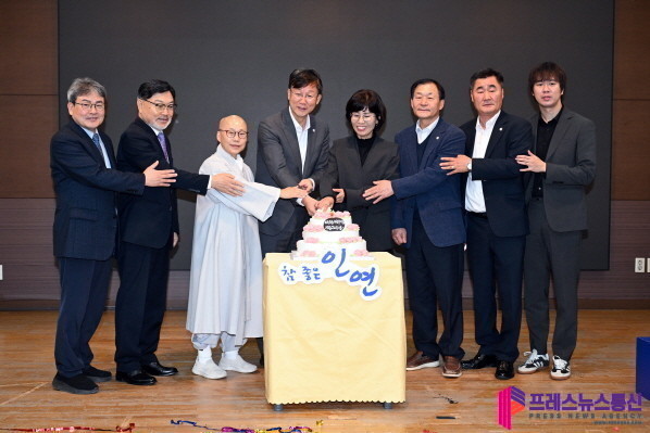 | ▲이민근 안산시장(왼쪽 네번째)이 지난 23일 부곡종합사회복지관 개관 20주년을 기념해 케이크 커팅식을 진행하고 있다.(사진=안산시) |