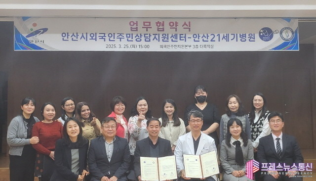 [프레스뉴스] 장현준 기자= 안산시(시장 이민근) 외국인주민상담지원센터는 지난 25일 외국인주민지원본부 다목적실에서 안산21세기병원(병원장 김재현)과 관내 외국인 주민 건강 증진을 도모하기 위한 의료 업무협약을 체결했다고 26일 밝혔다.