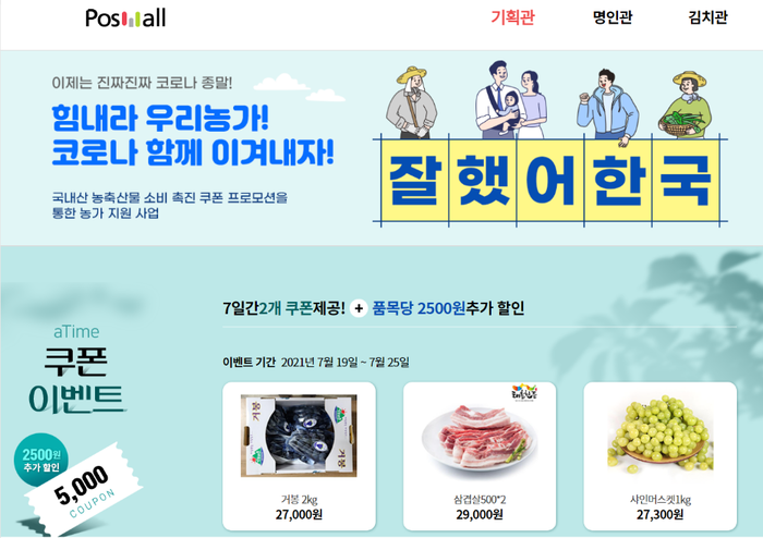 국내산 농축산물 소비촉진 위해 7.19~7.31까지 할인 혜택 제공