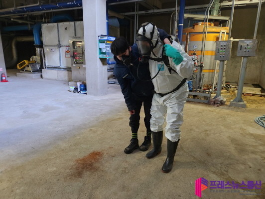 주요 훈련 내용으로는 ▲화학물질 누출 시 매뉴얼에 따른 대응 ▲구조대원 임무 숙지 ▲인명구조 방법 ▲2차 피해 예방 및 시설복구 등 실제 발생할 수 있는 위급사항에 대해 중점을 두고 진행됐다.