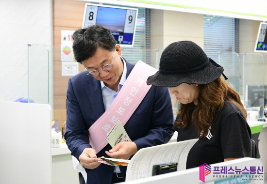 | ▲이민근 안산시장이 11일 시청 민원실을 방문한 시민에 '개인정보 보호 캠페인'을 하고 있다.(사진= 안산시) |