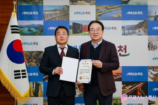 | ▲옥천군은 26일 민병연 상담관을 무료 법률 상담관으로 새롭게 위촉했다.(사진 왼쪽부터 민병연 상담관, 황규철 옥천군수)사진=옥천군 |